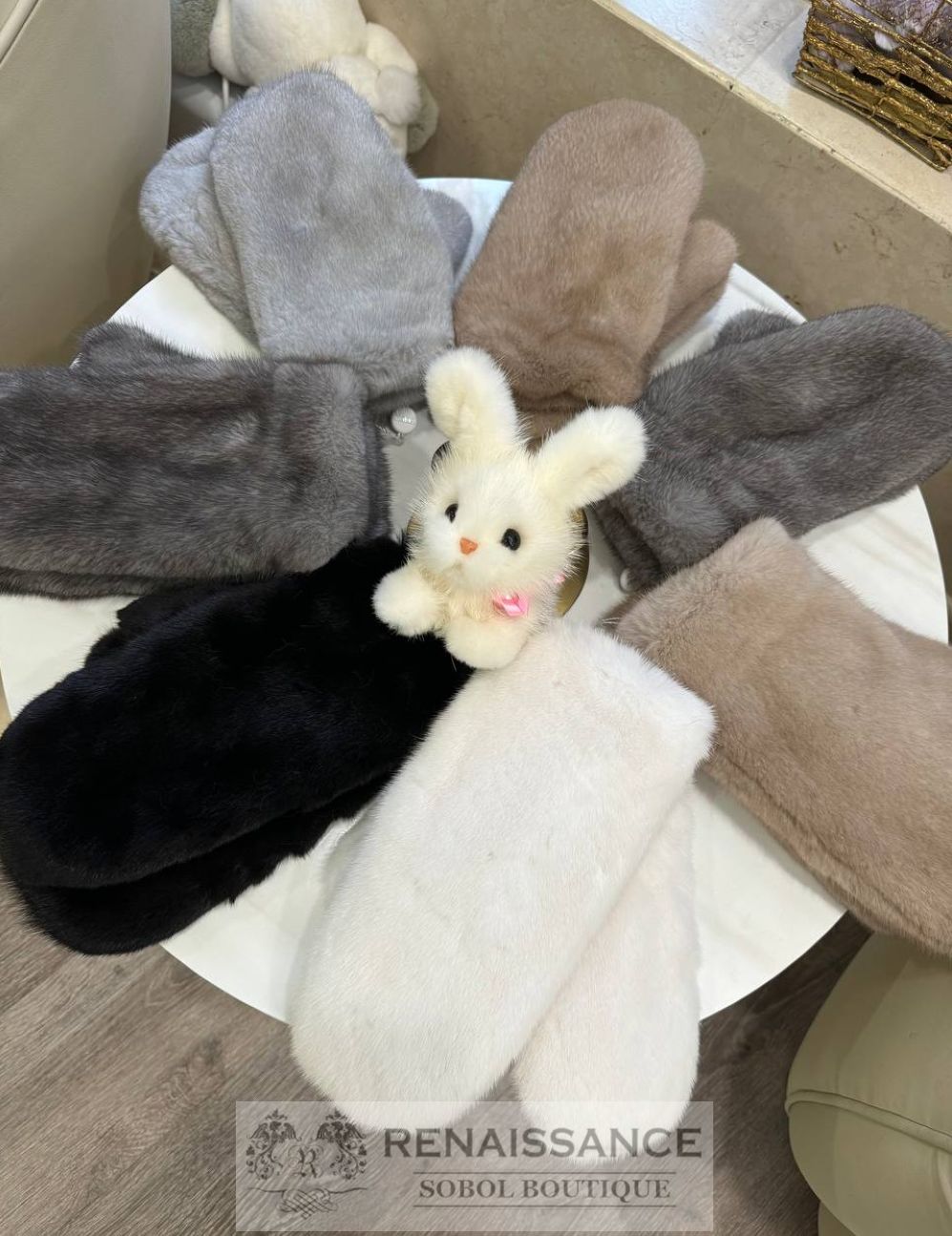 Варежки из натурального меха норки и соболя