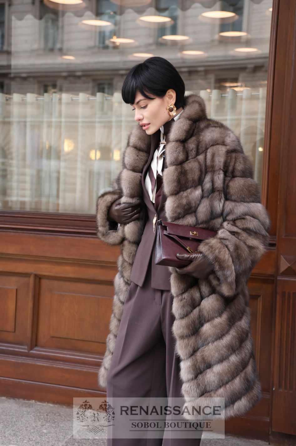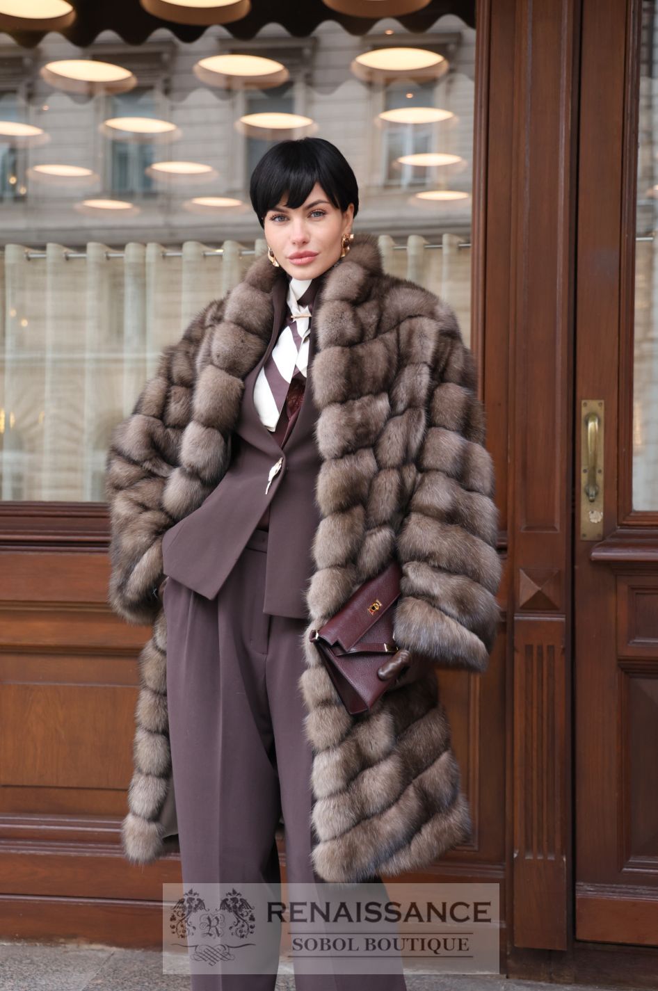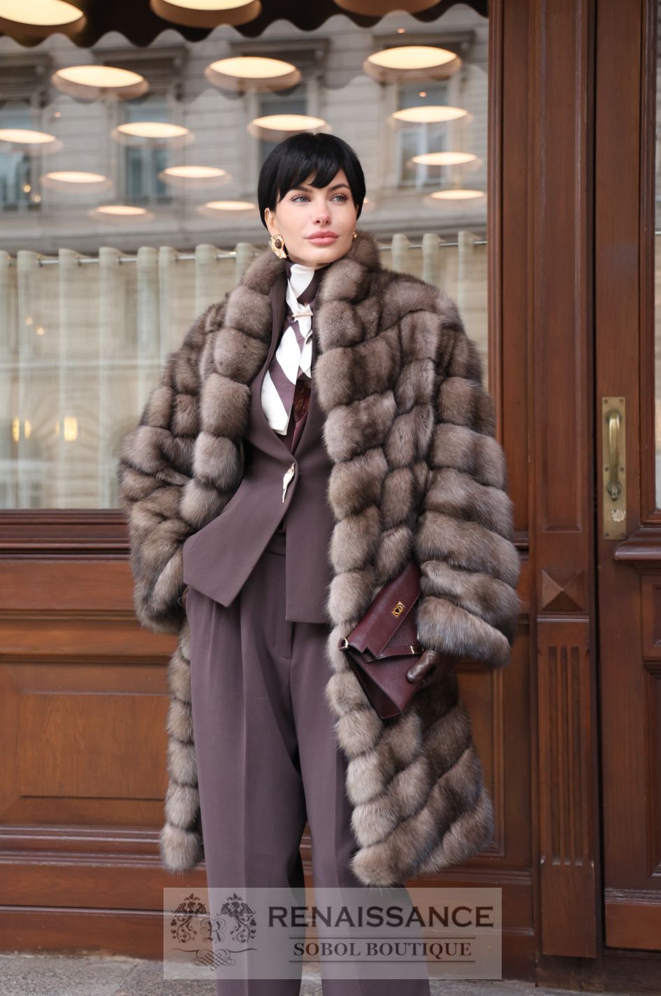 Шуба из светлого соболя, V образный воротник